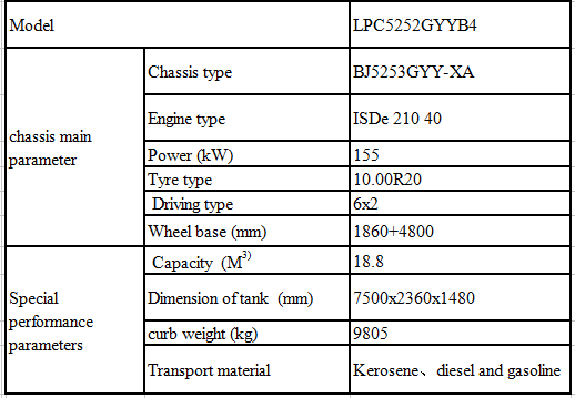 底盤主要性能參數(shù) | 底盤型號 | BJ5253GYY-XA | |